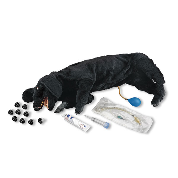 Same as the Advanced Sanitary CPR Dog (LF01155(X)N), but without electronic monitoring or IV capabilities. Includes soft carrying case, 6 muzzles, 10 nosepieces, and 3 lower disposable airways.