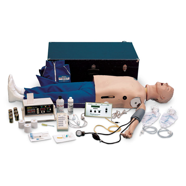 A Complete Resuscitation System with five stations allowing you to practice different scenarios. Consists of a full body CPARLENE® CPR manikin, IV Arm, Blood Pressure Arm, Defibrillation Chest Skin, and the “Airway Larry” Airway Management Head. Ideal for ACLS, paramedi, EMT, and nursing trainig at every level. Features all the same quality components as the Deluxe CRiSis™ manikin (LF03955U). The “pluses” are the addition of an Interactive ECG Simulator (see LF03670U), a printer for CPR evaluation, and a hard carrying case. The arrhythmia/pacing simulator recreates 17 adult heart rhythms and 17 pediatric rhythms. With an external pacer, you can simulate electronic capture. You can also simulate cardioversion with manual, semiautomatic, or automatic defibrillation. See LF03670U for full details of the arrhythmia/pacing simulator included with this manikin. The CPR simulation includes an electronic monitoring, memory, and printer unit light controller which displays running averages, provides hard copy printout, and has adult and child settings. See LF03401U for full details of the electronic monitoring, memory, and printer unit. Modular components allow you to create a manikin to suit your needs. Three-year warranty.